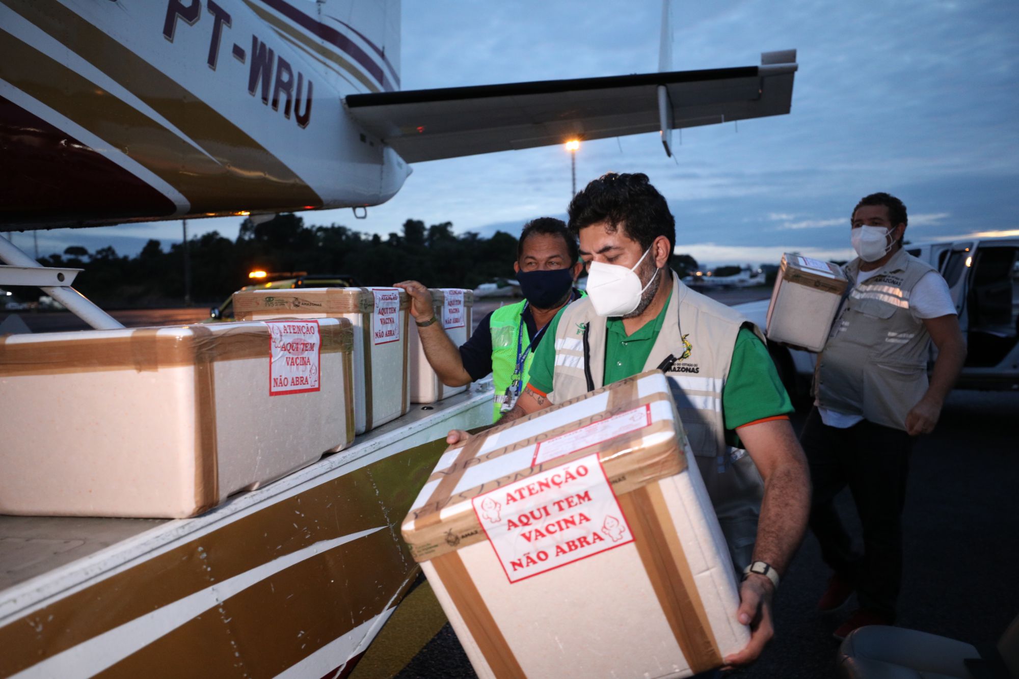 A ação de armazenamento e entrega das doses está sendo realizada pela Fundação de Vigilância em Saúde (FVS-AM). Ao todo, quatro aeronaves carregando os imunizantes e seringas saíram da capital amazonense às 6h. São voos devem levar em média 8 horas para abastecer os municípios de destino.