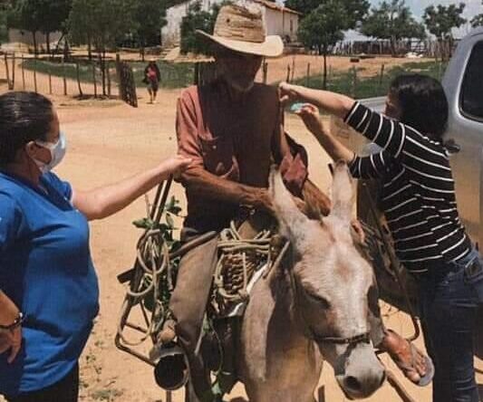 Idoso é vacinado contra Covid-19 em cima de jumento no Ceará