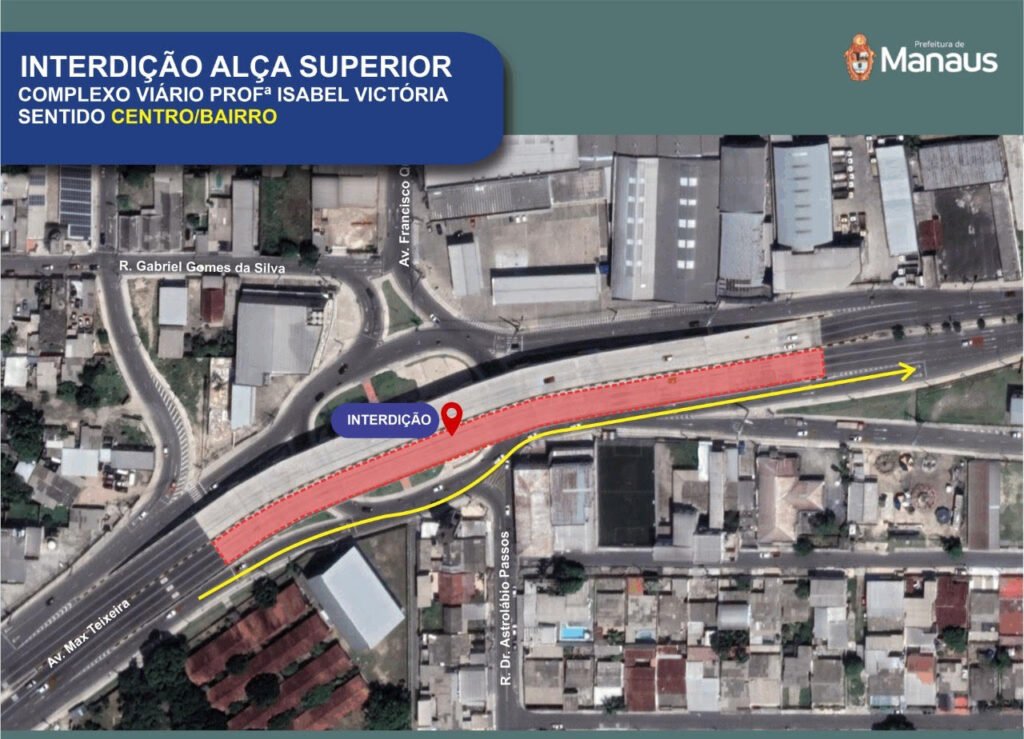 Alça superior de viaduto em Manaus é interditada novamente neste fim de semana