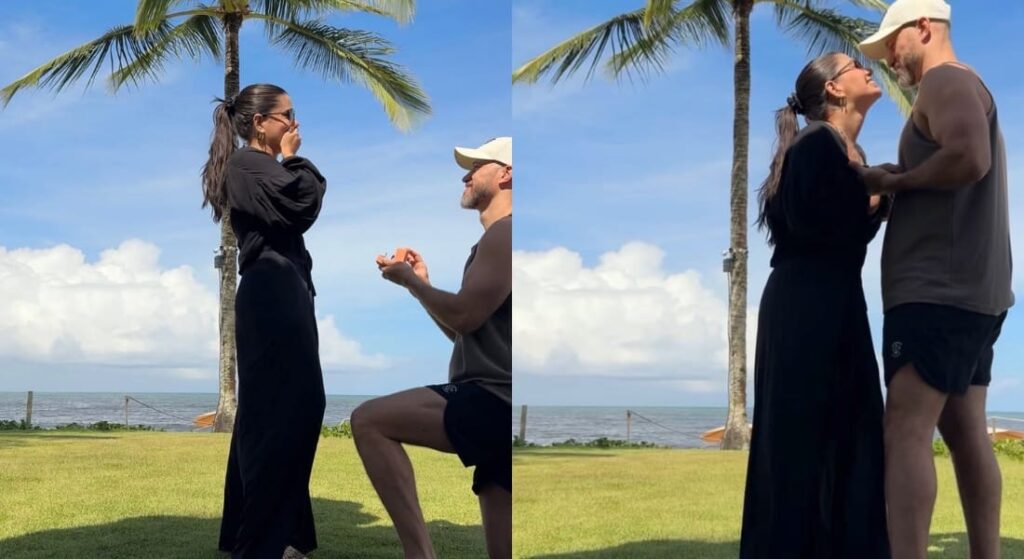 Ex-BBB Fernanda Bande é pedida em casamento em praia na Bahia