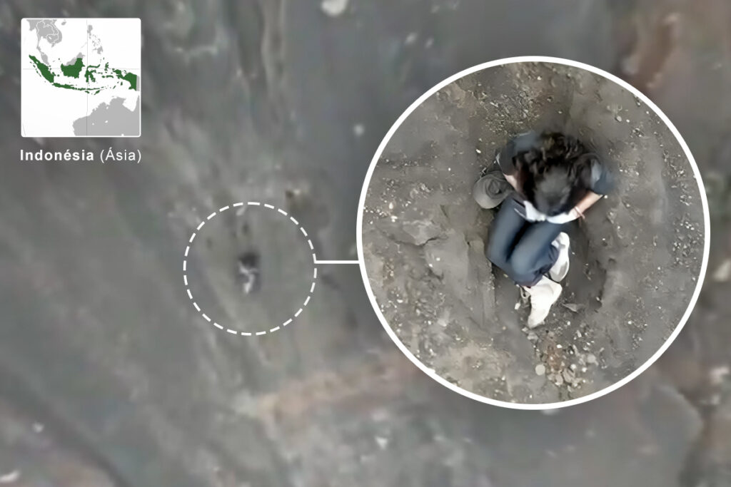 Brasileira é vista imóvel a 500 metros em penhasco na Indonésia após queda em vulcão
