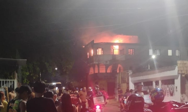 Incêndio de grandes proporções destrói casa de três andares em Manaus