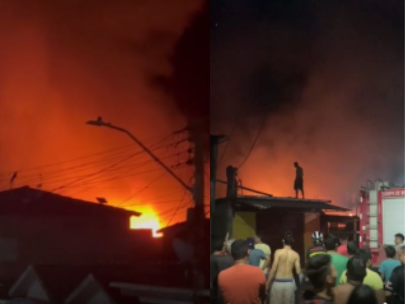 Incêndio de grandes proporções em Tefé (AM) destrói casas e deixa feridos