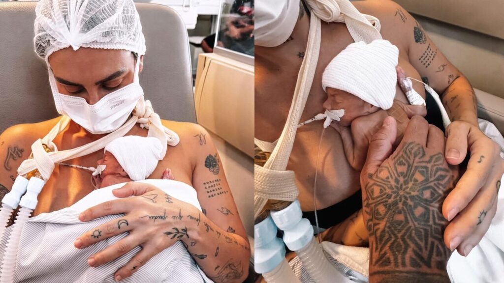 Após perda de bebê, Clara Maia segura gêmeo prematuro pela 1ª vez e compartilha na web