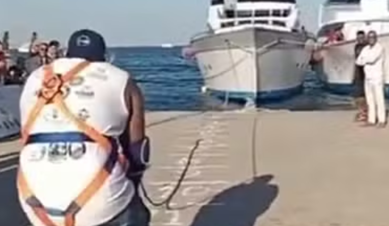 Homem puxa iate de 700 toneladas com os dentes para bater recorde