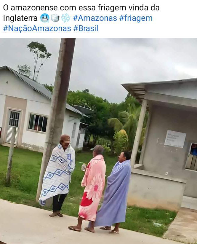 “Dormi em Manaus e acordei na Europa”, escreveu uma internauta. “Prepara o cobertor porque a frente fria chegou em Manaus”, escreveu outro.
