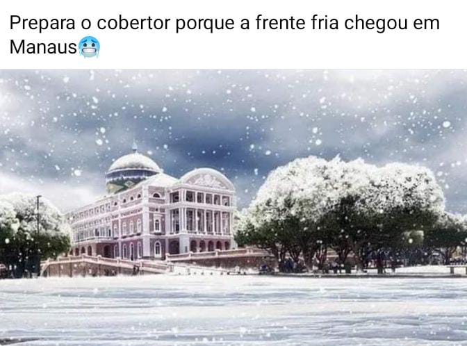 Após a cidade de Manaus atingir 21ºC na manhã desta quinta-feira (15), internautas brincaram com a situação nas redes sociais. Diversos memes foram compartilhados e até mesmo imagens do Teatro Amazonas cheio de neve.