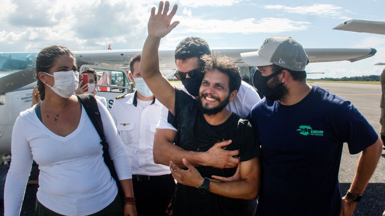 Dormia longe dos riachos para evitar emboscadas de animais. Conta ainda maravilhado que não encontrou nenhum dos grandes predadores. Nem uma onça, jacarés ou sucuris. “Para evitar ataques, caminhava fazendo barulho com as folhas. Se você anda em silêncio, pode incomodá-los sem querer”, detalha. Acaba de rever a mãe, que devido ao coronavírus não pôde ir recebê-lo no dia 6 de março em Santarém, cidade amazônica onde cresceu.