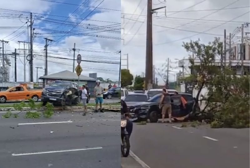 Um grave acidente envolvendo dois carros foi registrado na manhã deste domingo,22, na avenida Coronel Teixeira, no bairro Ponta Negra, zona Oeste de Manaus. A colisão entre uma picape S10 e um Renault Kwid destruiu uma árvore às margens da via e causou danos aos veículos.