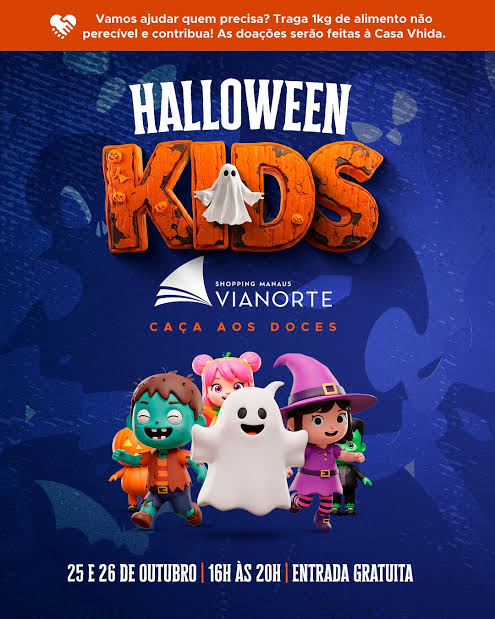 A programação infantil continua no Shopping Manaus ViaNorte, com o Halloween Kids, das 16h às 20h, no piso L2.