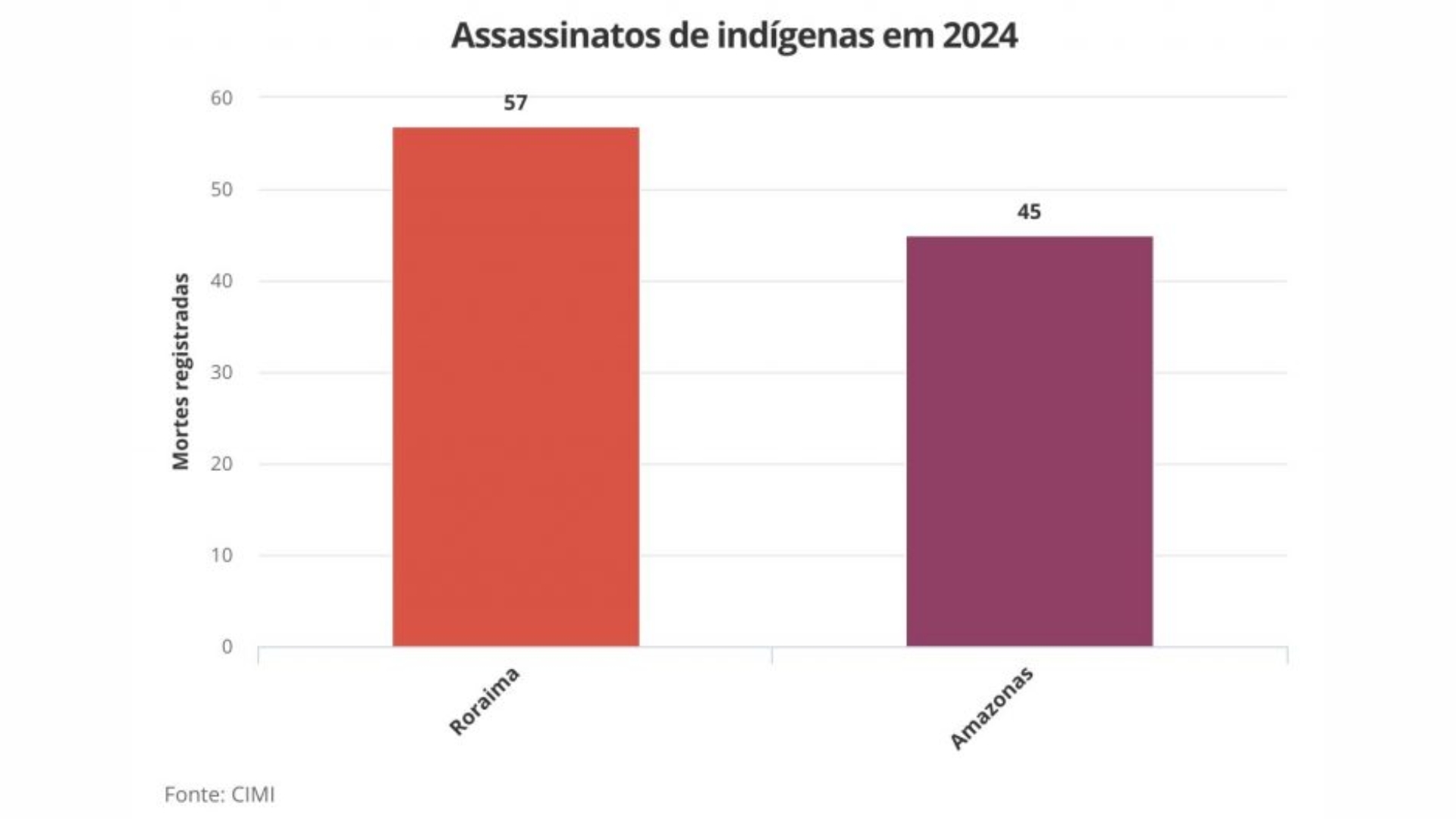 Além disso, o Amazonas foi o segundo estado com mais registros de assassinatos de indígenas no período, com 45 casos, ficando atrás apenas de Roraima, que registrou 57 mortes. Segundo o relatório, a violência física se soma à violência estrutural, marcada pela ausência de políticas públicas efetivas nas áreas de saúde, segurança, educação e proteção territorial.