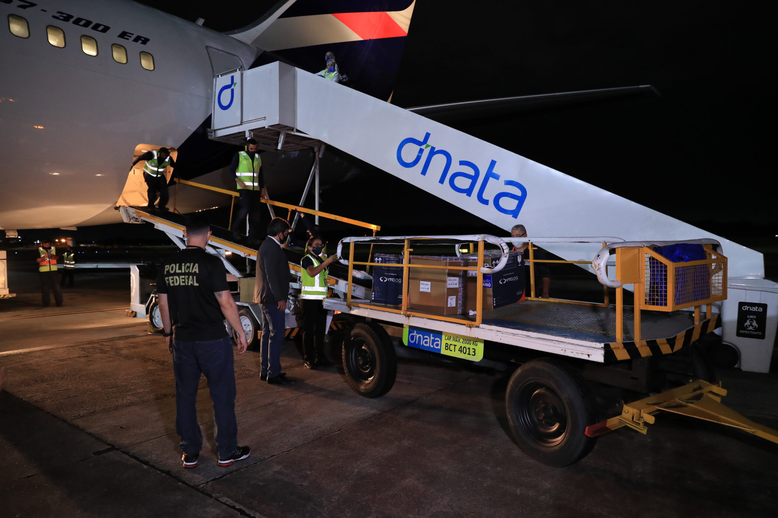 A remessa chegou a Manaus a bordo do voo LA-4785 da empresa Latam e foi desembarcada por volta das 23h30, no Aeroporto Internacional Eduardo Gomes. Todo o procedimento foi acompanhado por técnicos da Fundação de Vigilância em Saúde (FVS-AM) e agentes da Polícia Federal (PF).