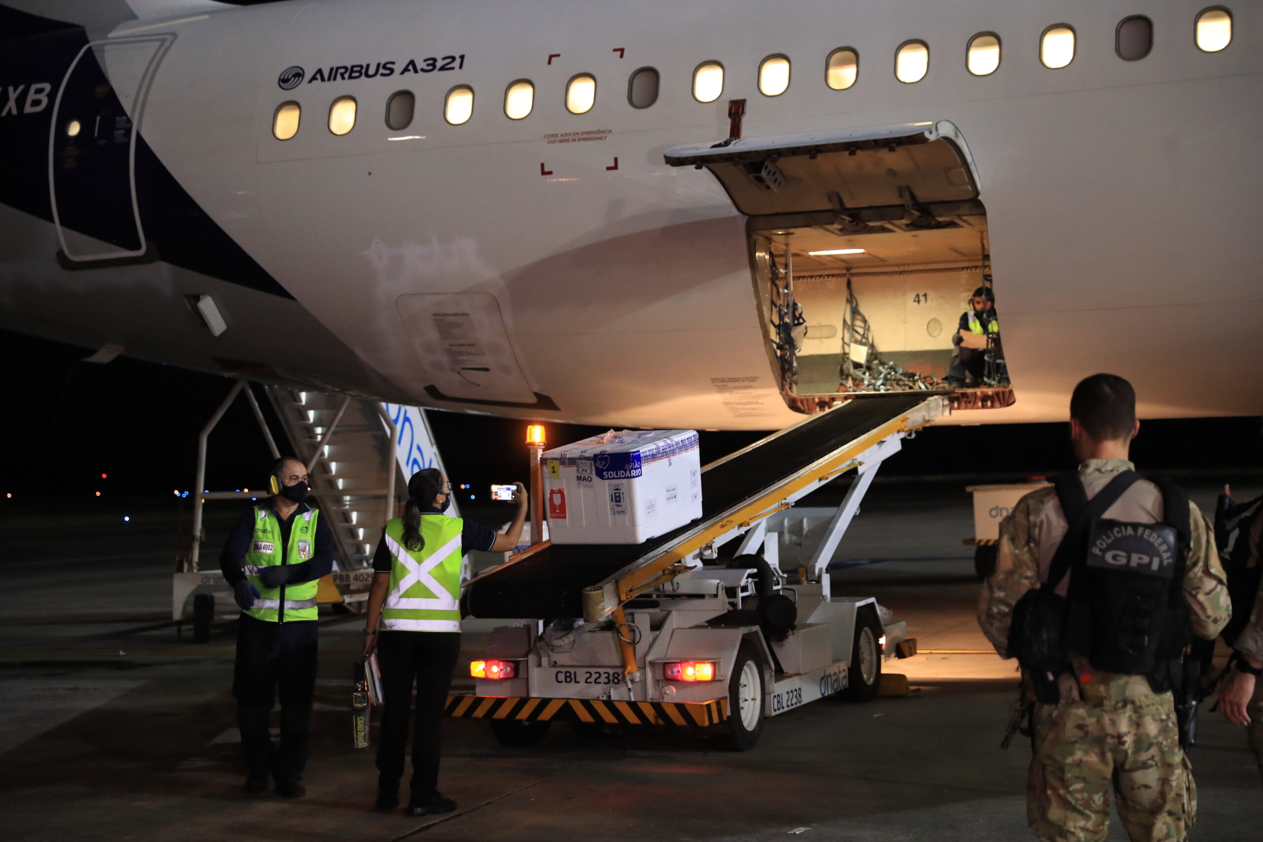 As novas doses foram desembarcadas no Aeroporto Internacional Eduardo Gomes por volta da 0h10, após serem trazidas à capital amazonense em uma aeronave modelo Airbus A321, da empresa Latam. Após o desembarque, as 7 mil doses foram escoltadas pela Polícia Federal até as câmaras frias instaladas na FVS-AM, onde foram contabilizadas e armazenadas.