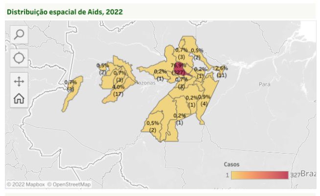 De acordo com os dados da FVS-RCP, grande parte dos casos de Aids se concentram na cidade de Manaus, totalizando 327 registros. Nos outros municípios do Amazonas, os números de casos da doença variam de um a 15 registros nos últimos dez meses.