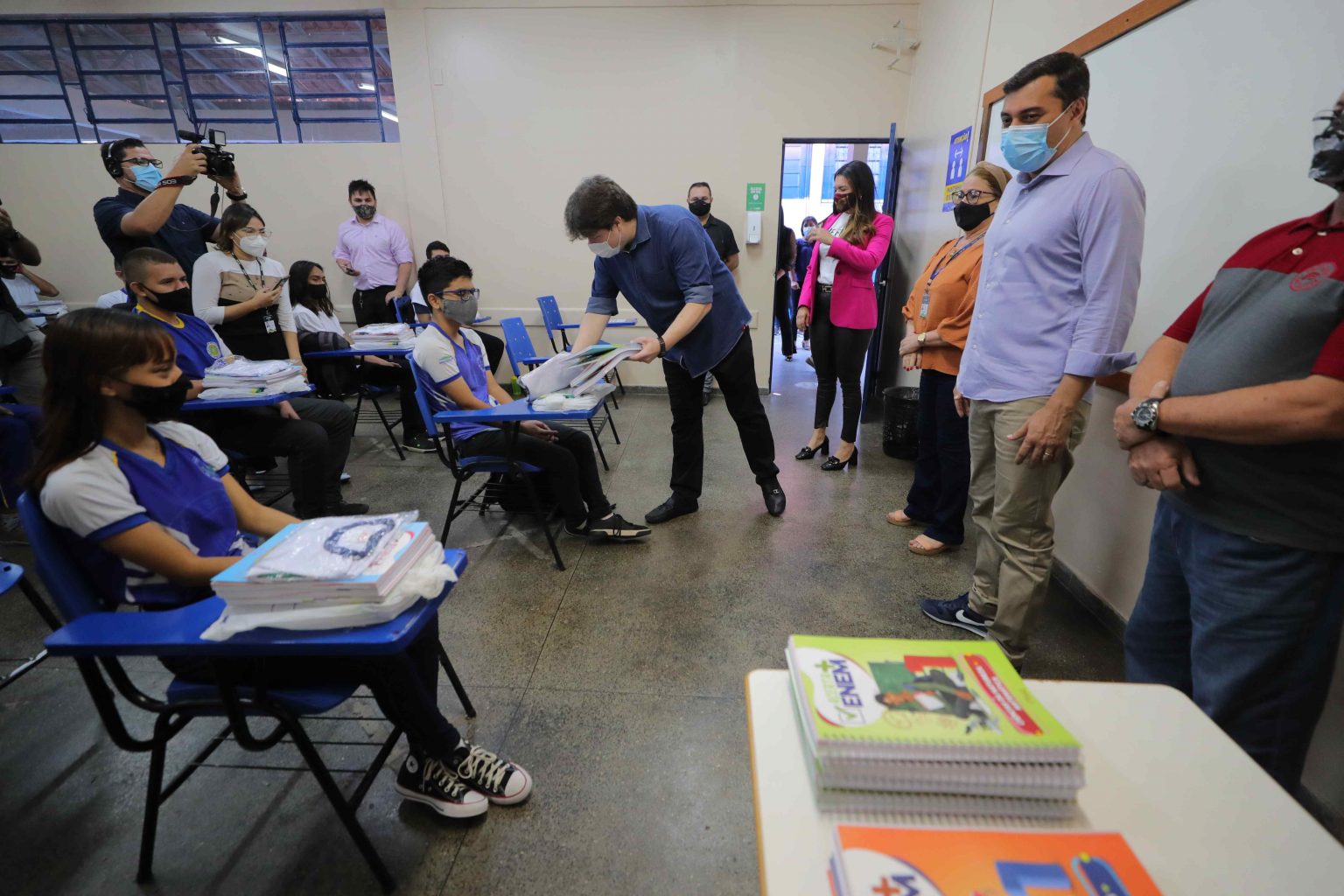 “O que nós fazendo aqui é um resgate da dignidade, do respeito a esses alunos, porque nós estamos entregando fardamento depois de sete anos, estamos entregando material escolar e hoje estamos entregando também um material que é fundamental para aqueles alunos que estão no último ano do Ensino Médio, que é o material preparatório para o Enem. Eles receberam esse material e começam esse trabalho de preparação. Da mesma forma, nós estamos entregando kit para os professores. Essa ação é uma ação inédita, porque os professores nunca receberam esse kit, nunca receberam esse apoio”, ressaltou Wilson Lima.