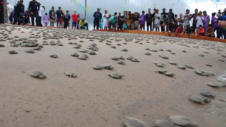 Boa parte dos ovos eclodem naturalmente nos lugares onde foram depositados pelas fêmeas. Já os ovos encontrados em locais de vulnerabilidade são coletados e transferidos para uma espécie de berçário, que imita as condições encontradas no habitat natural desses animais, onde permanecem seguros até o período de eclosão.