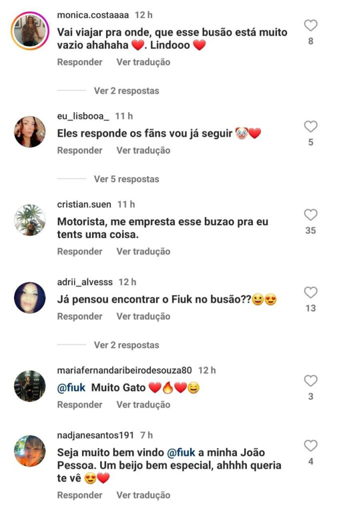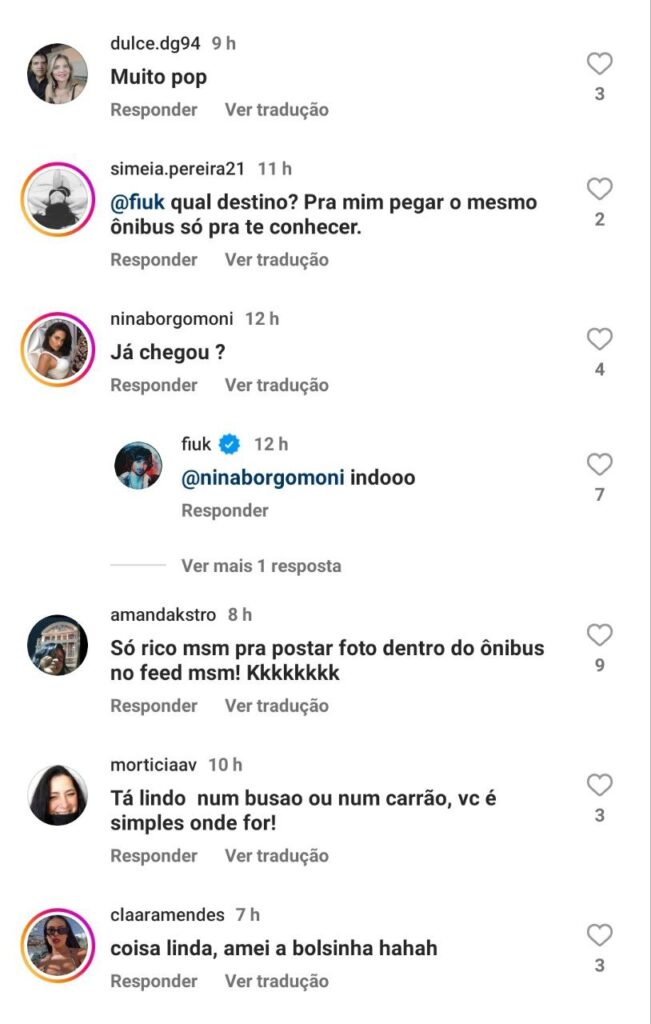 “Pobrezinho”, “Não tá fácil pra ninguém”, “Cara de quem nunca andou em um busão” e “Já pensou encontrar o Fiuk no busão?”, foram apenas alguns dos comentários de internautas.