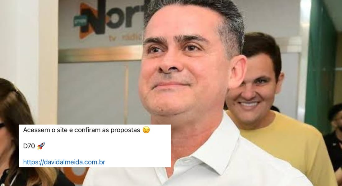 A publicação, que foi impulsionada como anúncio pago nas plataformas Facebook e Instagram, foi identificada na biblioteca de anúncios do Meta, empresa responsável pela gestão dessas redes sociais. Na legenda do post, a servidora escreveu: “Acessem o site e confiram as propostas, D70.”, acompanhado de um link que direcionava ao site oficial da campanha de David Almeida.