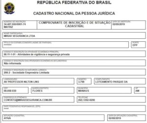 A Mirax Segurança Ltda é uma empresa de pequeno porte, inscrita sob o CNPJ 34.407.555/0001-74, com sede na avenida Professor Nilton Lins, bairro Flores, zona Centro-Sul de Manaus. O sócio-administrador registrado é Felipe Andrade Monteiro.