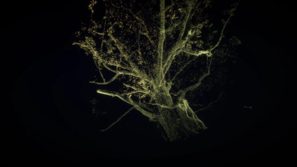 Seu habitat é traduzido em imagens e sons pelo coletivo Invisible Flocks, levando os espectadores a uma viagem no tempo para um passado distante, na qual a árvore anciã já habitava os igapós da Amazônia, muito antes de qualquer um de nós estarmos habitando o planeta.