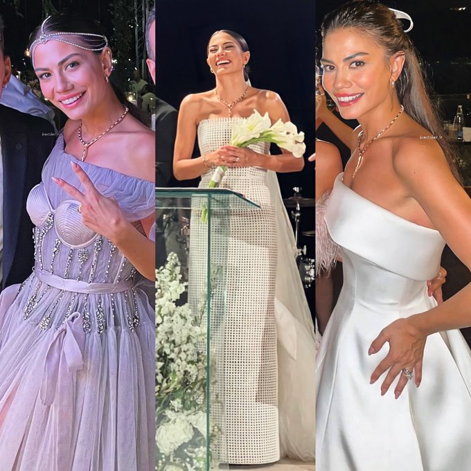 Enquanto Demet Özdemir apareceu diante dos convidados em um vestido de noiva desenhado por Eda Güngör Museum of Fine Clothing, ela deslumbrou os convidados com seu segundo vestido de noiva desenhado por Nihan Peker após o casamento.