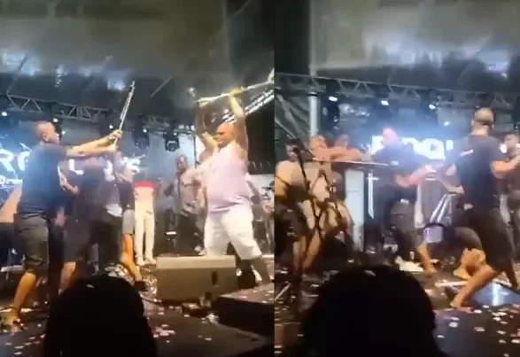 Além disso, nas gravações, é possível ver os músicos trocando socos, chutes e utilizando os equipamentos para agredir as pessoas. Não há informações sobre os feridos.