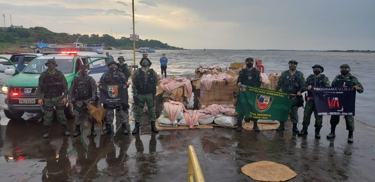 Policiais militares do Batalhão de Policiamento Ambiental (BPAmb), juntamente com policiais militares da Companhia Independente de Policiamento com Cães (CIPCães), apreenderam na madrugada de hoje, dia 10,na orla de Manacapuru (a 68 quilômetros de Manaus) 9,5 toneladas de pescado ilegal e uma arma de fogo. Dois homens foram presos em flagrante.