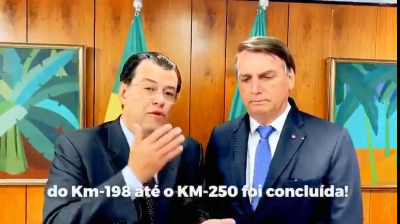 Eduardo detalhou para Bolsonaro, ainda, a visita realizada com o ministro Tarcísio de Freitas, da Infraestrutura, ao “trecho do meio”, no último fim de semana. A extensão, que vai do quilômetro 250 até o 655, já começou a receber intervenções para evitar transtornos, como atoleiros e buracos, aos que por ela transitam durante o inverno amazônico.