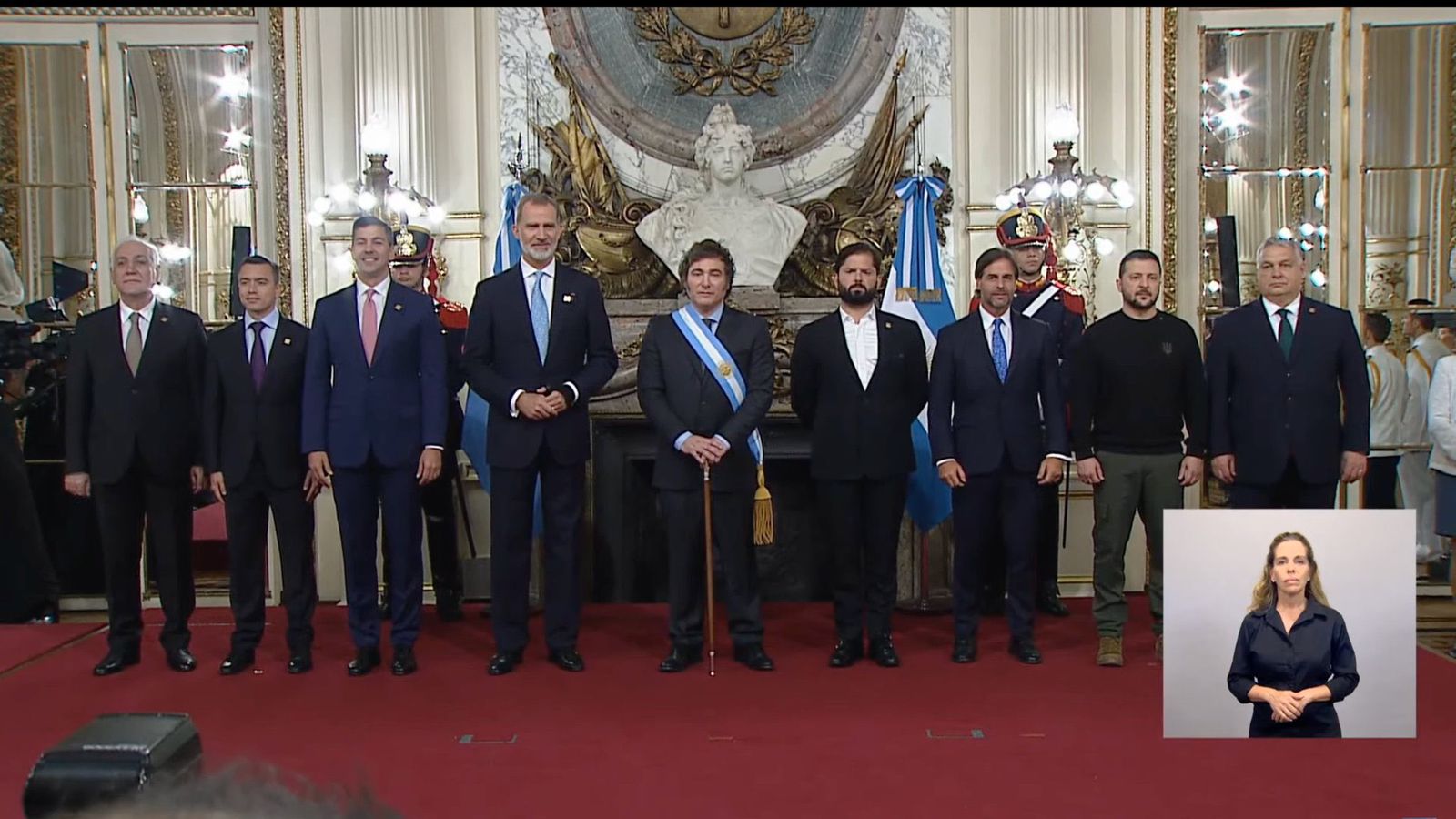 Outros líderes que compareceram à posse foram o primeiro-ministro da Hungria, Viktor Orban, o presidente da Ucrânia, Volodimir Zelenski, e o rei da Espanha, Felipe 6º.
