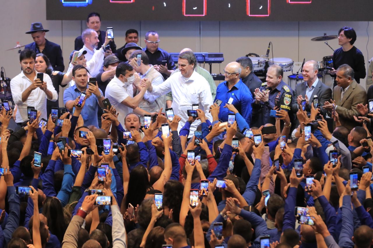O presidente Jair Bolsonaro participou, nessa terça-feira (26), do baile de formatura de novos policiais militares, em Manaus, a convite do governador Wilson Lima. Eles foram aprovados em concurso realizado em 2011 e o baile foi realizado no Centro de Convenções do Amazonas Vasco Vasques, zona Centro-Sul.