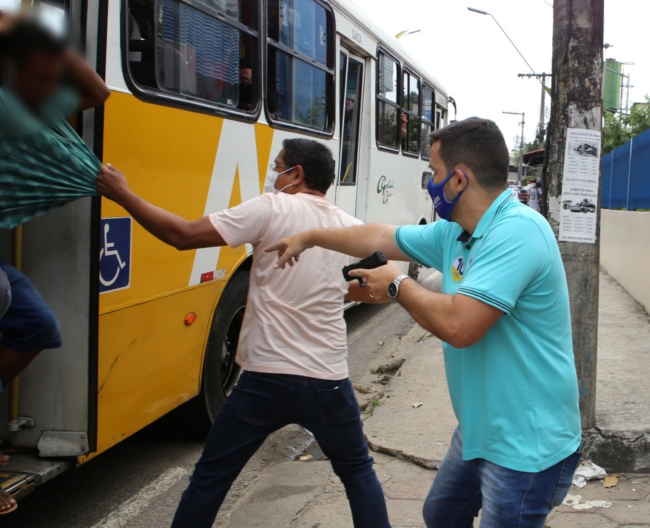 “Acabamos de participar de uma ocorrência policial, onde infratores levaram celulares das vítimas que estavam no ônibus, aqui na frente do Coroado, onde nós estávamos fazendo nossa panfletagem. Esse é o drama que a população manauara passa todos os dias, a falta de segurança nos coletivos, por isso temos no nosso programa de governo o Buser, é um aplicativo que vai monitorar nossa frota, primeiro ele vai dá qualidade de vida porque você vai saber que horas o teu ônibus vai passar na tua parada, segundo a frota vai ser monitorada, em caso de emergência, o motorista, o trocador vai apertar o botão do pânico, botão de emergência, com a frota monitorada a viatura mais próxima faz a abordagem e coloca o bandido na cadeia. Hoje colocamos mais um infrator na cadeia, e assim vai ser a nossa rotina como prefeito de Manaus, vamos levar segurança para o nosso povo, assaltante não vai ter vez dentro de ônibus não”, falou Alberto Neto.