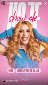 Nas redes sociais, a cantora paraense Joelma divulgou seu show, que acontecerá na noite de hoje, compartilhando com seus mais de 5,7 milhões de seguidores no Instagram.