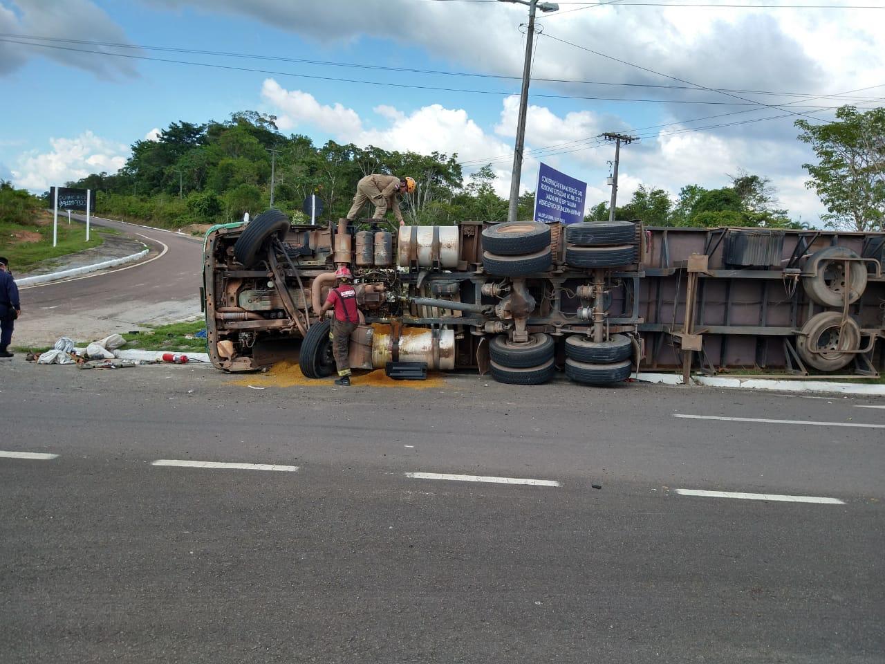 O corpo de Bombeiros atendeu nessa segunda-feira, dia 31, um acidente de trânsito na BR 174, que liga o Amazonas a Roraima. Segundo os militares, o acidente aconteceu no Km102, na rotatória de acesso à estrada de Balbina. A carreta, placa NJL 0305 Rondonópolis, que transportava um contêiner carregado de sal, tombou, duas pessoas ficaram feridas.O condutor foi levado para o Hospital de Presidente Figueiredo.