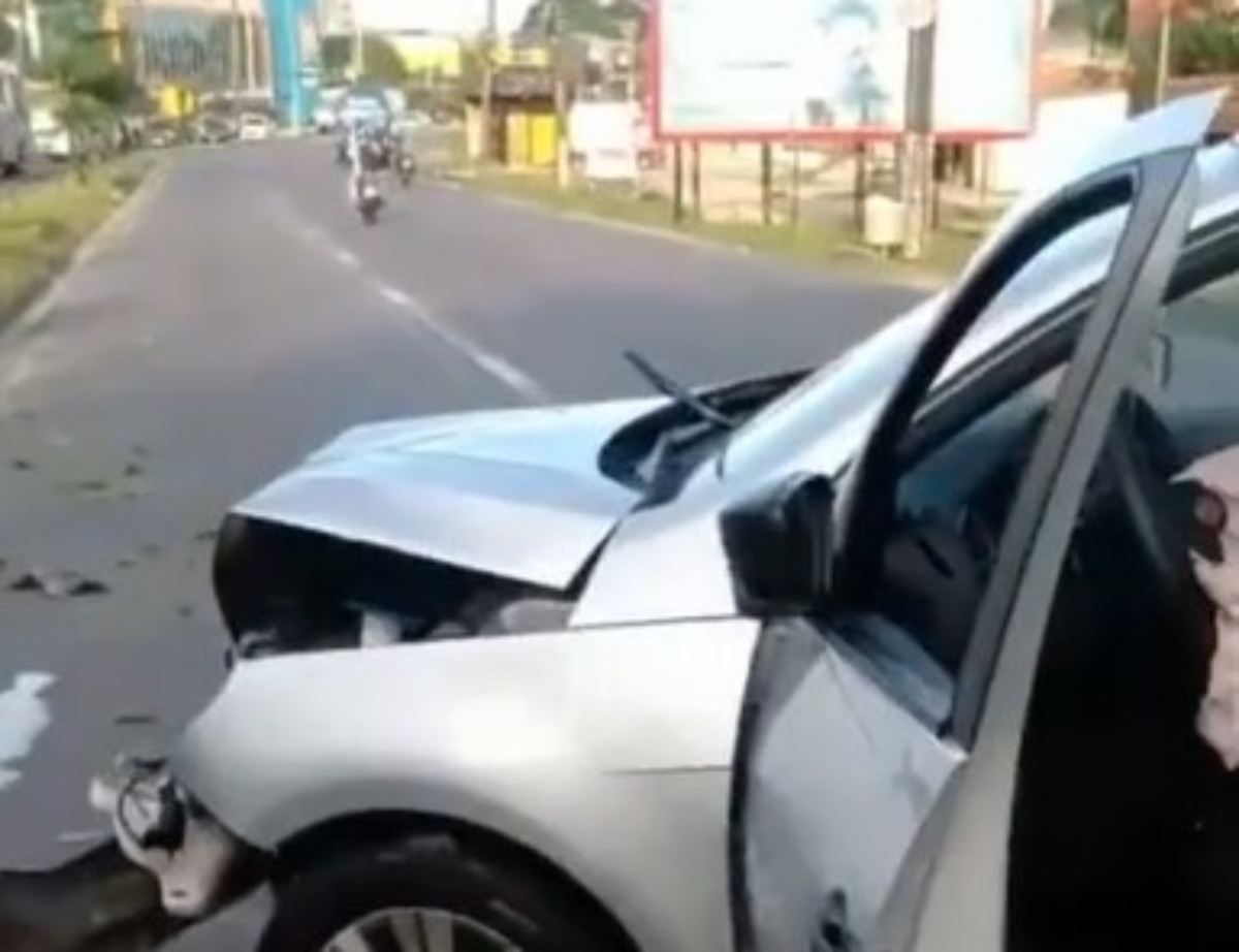 Na manhã deste sábado (28), carro modelo Gol ficou destruído na manhã deste sábado (28) ao colidir contra uma árvore, na avenida Max Teixeira, bairro Cidade Nova, na zona Norte de Manaus.