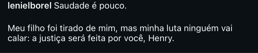 A sessão desta segunda também foi marcada pela repercussão nas redes sociais. Pai da criança e assistente de acusação, Leniel Borel voltou a se manifestar sobre o caso nas redes sociais, alegando que a justiça seria feita.