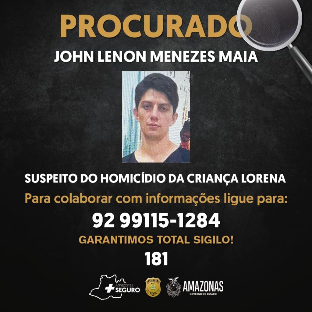 Portanto, quem tiver informações acerca da localização de John Lenon, que entre em contato pelos números (92) 99115-1284 e 99486-4027, o disque-denúncia da Depca, ou pelo 181, da Secretaria de Estado de Segurança Pública (SSP-AM). “A identidade do informante será preservada”, garantiu a titular.