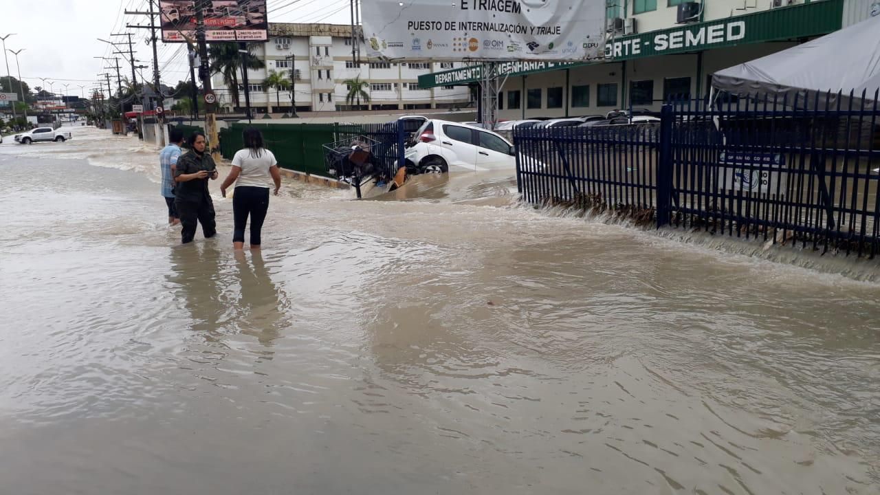 A água barrenta cobriu o local, chamado de Posto de Interiorização e Triagem (Pitrig), que funcionava sob grandes tendas na Avenida Torquato Tapajós, no bairro Flores.