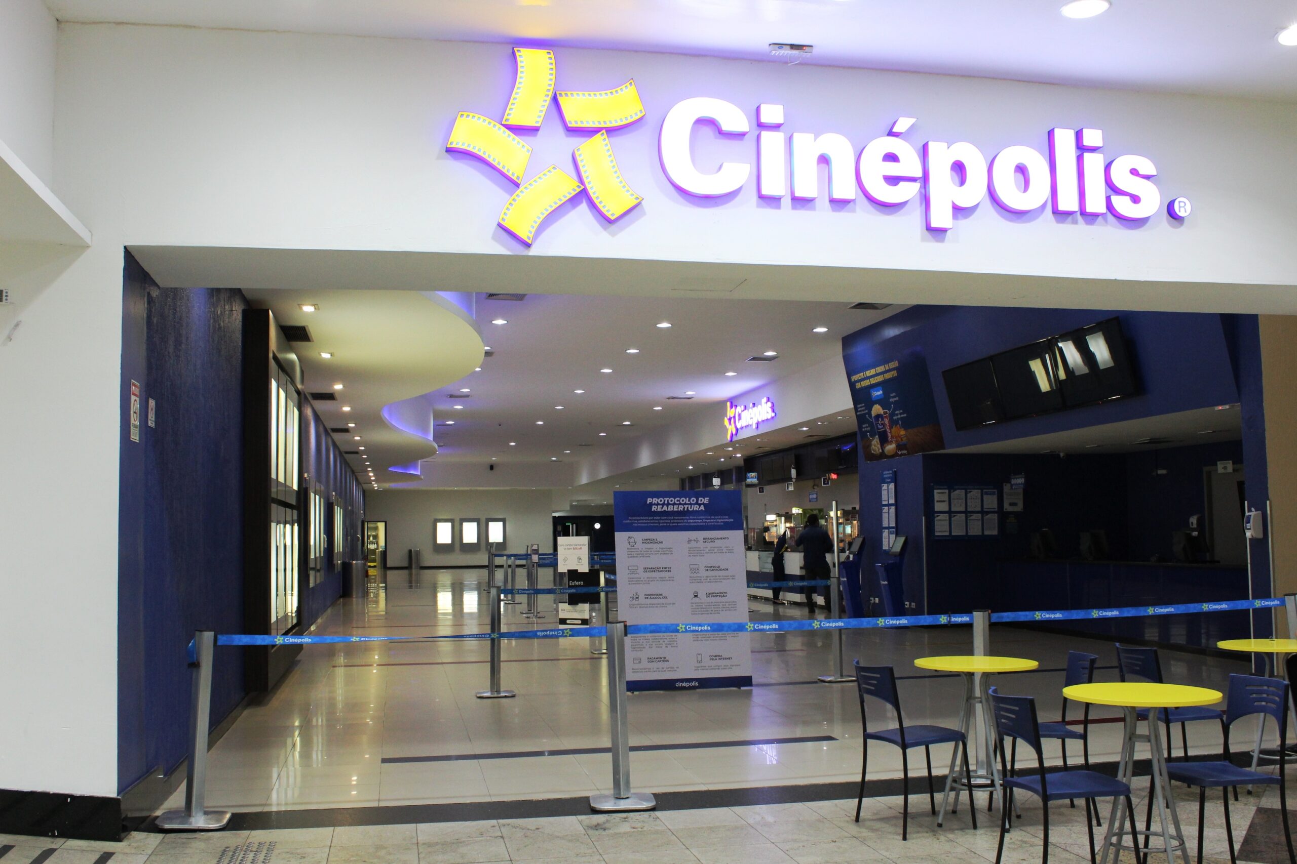 O cinema abrirá todos os dias a partir das 15h, dispensers de álcool estão espalhados por todo o ambiente, assim como comunicação visual informativa.