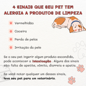 Afinal, nem sempre é fácil ficar de olho no que o seu pet está aprontando enquanto você limpa a casa. Por isso, é sempre bom tomar cuidado com o tipo de produto você usa. Cloro, creolina e água sanitária são componentes que podem prejudicar cachorros e gatos, assim como amônia e ácidos. Sempre preste atenção aos rótulos antes de escolher seus produtos e evite os que mencionarem ácido clorídrico, sulfúrico ou fosfórico.