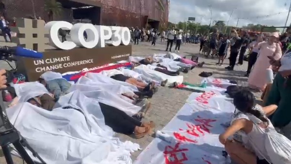 Manifestantes mexicanos chamaram a atenção na manhã desta segunda-feira (10) durante um ato simbólico realizado em frente à entrada da Blue Zone da COP30, em Belém (PA), no primeiro dia da conferência sobre mudanças climáticas. Cobertos por lençóis e deitados no chão, os participantes encenaram uma “morte coletiva” para denunciar a violência sofrida por defensores do meio ambiente na América Latina.