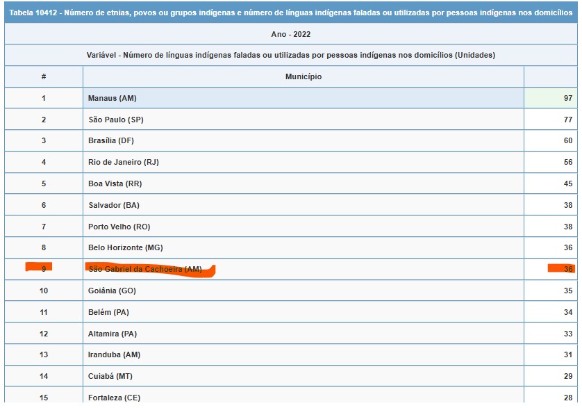 Diferente dos dados apresentados pelo IBGE, o professor Irineu explicou que atualmente são faladas apenas 19 línguas na cidade de São Gabriel da Cachoeira e existem 25 etnias. Ele também questionou o levantamento atual do Censo de 2022, que não lista as línguas faladas na região.