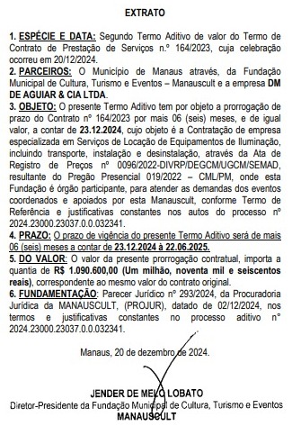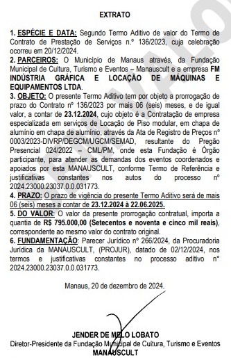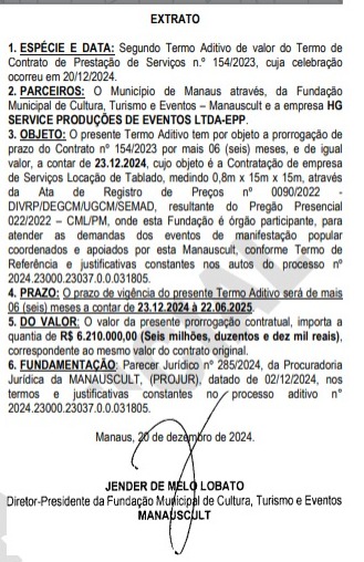 Os gastos da prefeitura de Manaus com festas e eventos, por meio da Fundação Municipal de Cultura, Turismo e Eventos (Manauscult), já ultrapassam o valor de R$ 100 milhões, após a pasta renovar mais quatro contratos que juntos somam cerca de R$ 10,7 milhões. Os novos extratos foram publicados no Diário Oficial do Município (DOM) da quinta-feira (23).