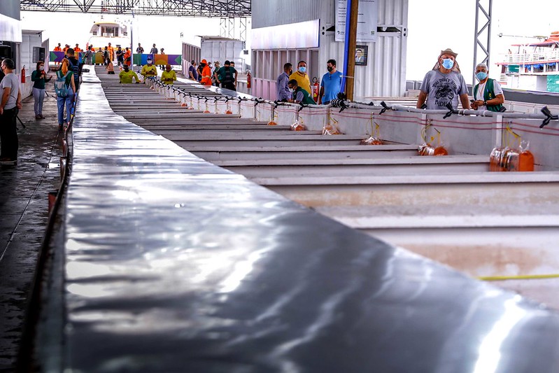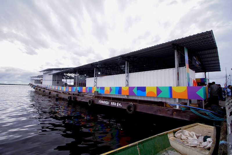 Na última quarta-feira (19), a Prefeitura de Manaus inaugurou a 1ª feira flutuante do Brasil, localizada na Manaus Moderna. A balsa irá abrigar 221 permissionários atingidos pela cheia pelos próximos três meses, tempo estimado para que aconteça a vazante.