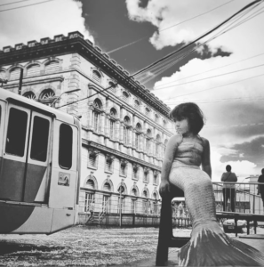 Outra pequena sereia aproveitou o cenário para fazer os seus cliques. Com o intuito de contribuir para uma campanha de sensibilização sobre mudanças climáticas e a poluição dos rios, Yeza Nikita foi fotografada pelo pai, Daniel Gomes, vestida de sereia, em frente ao prédio da Alfândega.