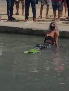 Aproveitando a movimentação de pessoas na avenida Eduardo Ribeiro, próximo ao Relógio Municipal, Pabllo Lima rapidamente alcançou popularidade nas redes sociais ao viralizar “mergulhando” na rua alagada com sua fantasia de sereia.