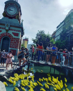 Outra pequena sereia aproveitou o cenário para fazer os seus cliques. Com o intuito de contribuir para uma campanha de sensibilização sobre mudanças climáticas e a poluição dos rios, Yeza Nikita foi fotografada pelo pai, Daniel Gomes, vestida de sereia, em frente ao prédio da Alfândega.