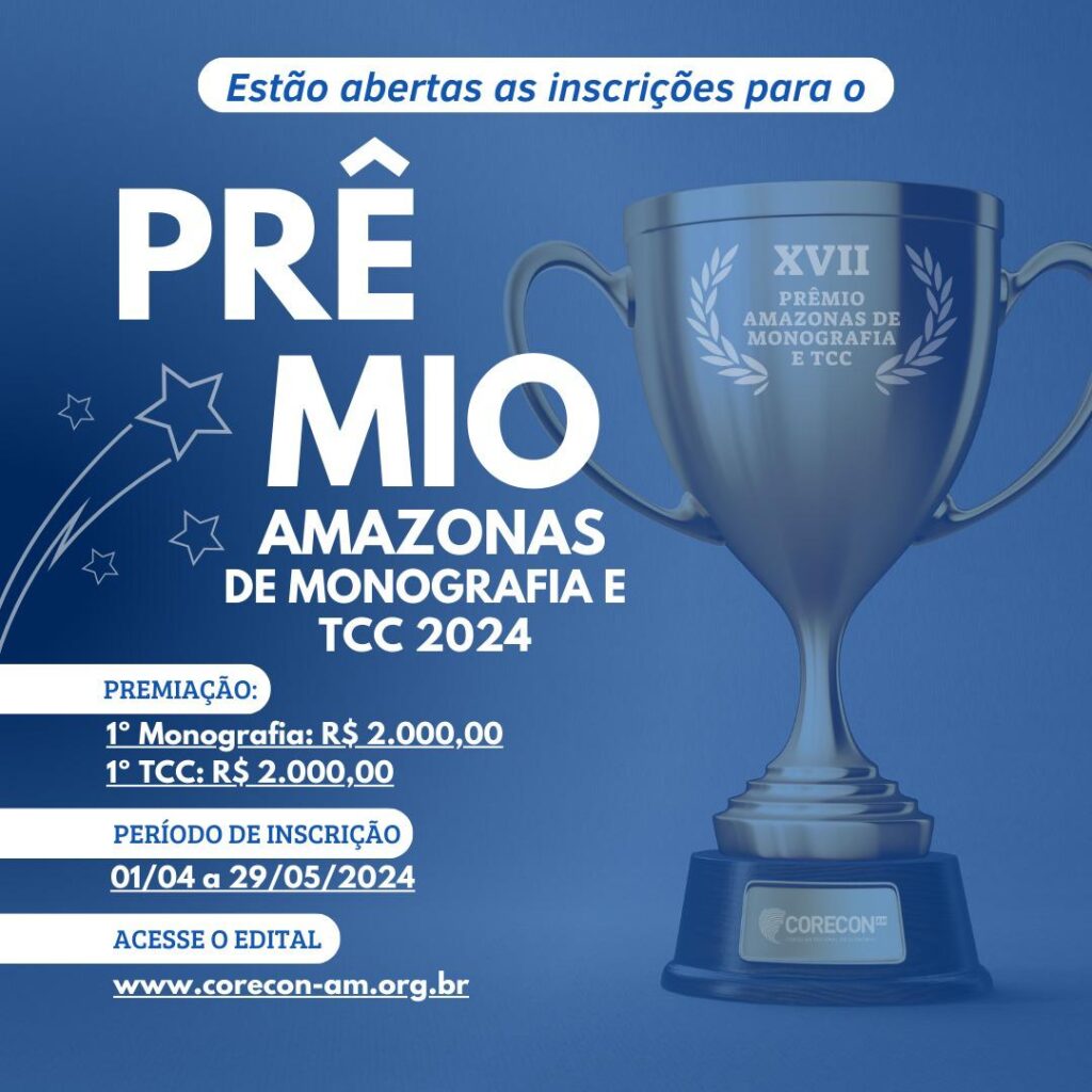 O Conselho Regional de Economia do Amazonas (Corecon-AM) está com inscrições abertas para o Prêmio Amazonas de Monografia e TCC 2024. O concurso premiará com R$ 2 mil os melhores trabalhos monográficos feitos por estudantes ou graduados em Ciências Econômicas. Interessados devem realizar a inscrição até 29 de abril.