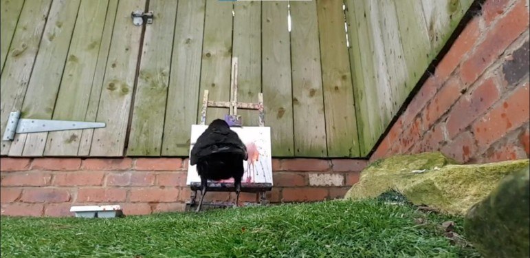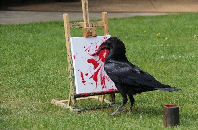 O corvo fêmea Odin, de 11 anos, viralizou nas redes sociais por pintar quadros com perfeição e chegou a ser comparado a um dos mais conhecidos artistas abstratos, o pintor Jackson Pollock. A ave produz suas artes durante as tardes em um parque do Reino Unido.