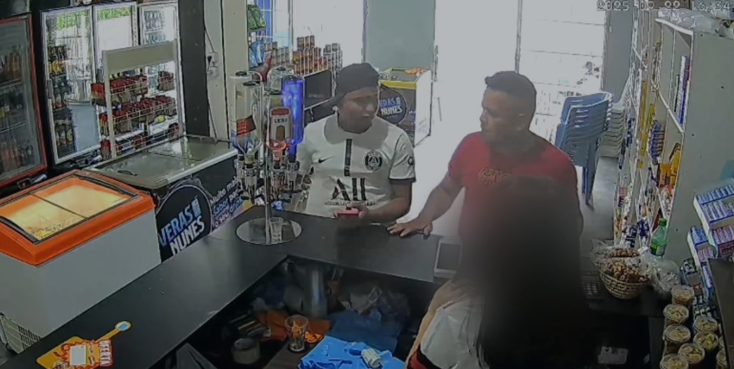 Ao final do atendimento, os suspeitos apontam uma arma para a jovem e levam, além das bebidas, objetos do caixa. Em seguida, fogem do local em uma motocicleta.