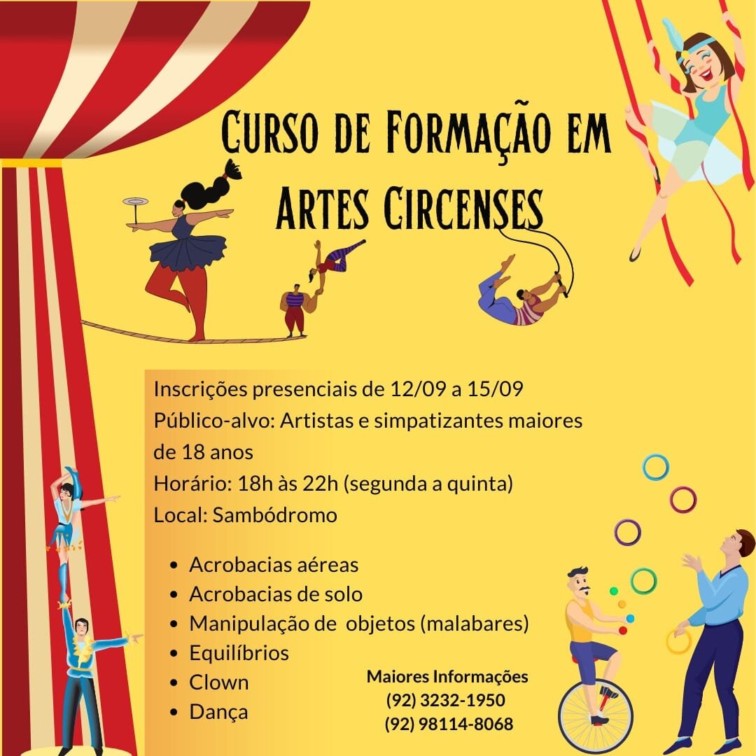 Para se inscrever no Curso de Formação em Artes Circenses é necessário comparecer ao Sambódromo de Manaus, Bloco F, no setor Secretaria Escolar, entre os dias 12 e 15 deste mês, das 8h às 11h e das 13h às 17h. O curso é destinado a artistas e simpatizantes da área.